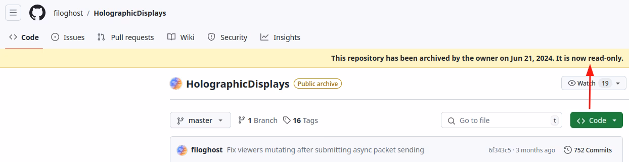 建设阶段Java 插件其他插件全息图/浮空字HolographicDisplays本页总览HolographicDisplays 信息Bukkit https://dev.bukkit.org/projects/holographic-displaysGitHub https://github.com/filoghost/HolographicDisplays文档 https://filoghost.me/docs/holographic-displays 老牌全息图插件,不过咱建议用 DecentHolograms 停更 目前项目已经归档,这意味着此仓库将不会再有新的代码提交